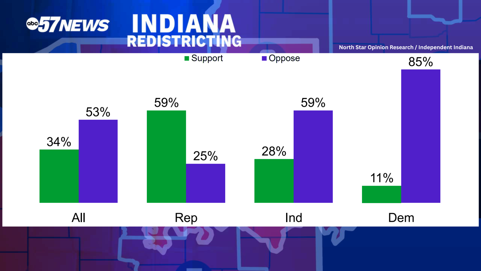 That poll found a majority of Hoosiers, 53 percent, oppose the proposal to redraw Indiana’s congressional district, while 34 percent support redistricting.