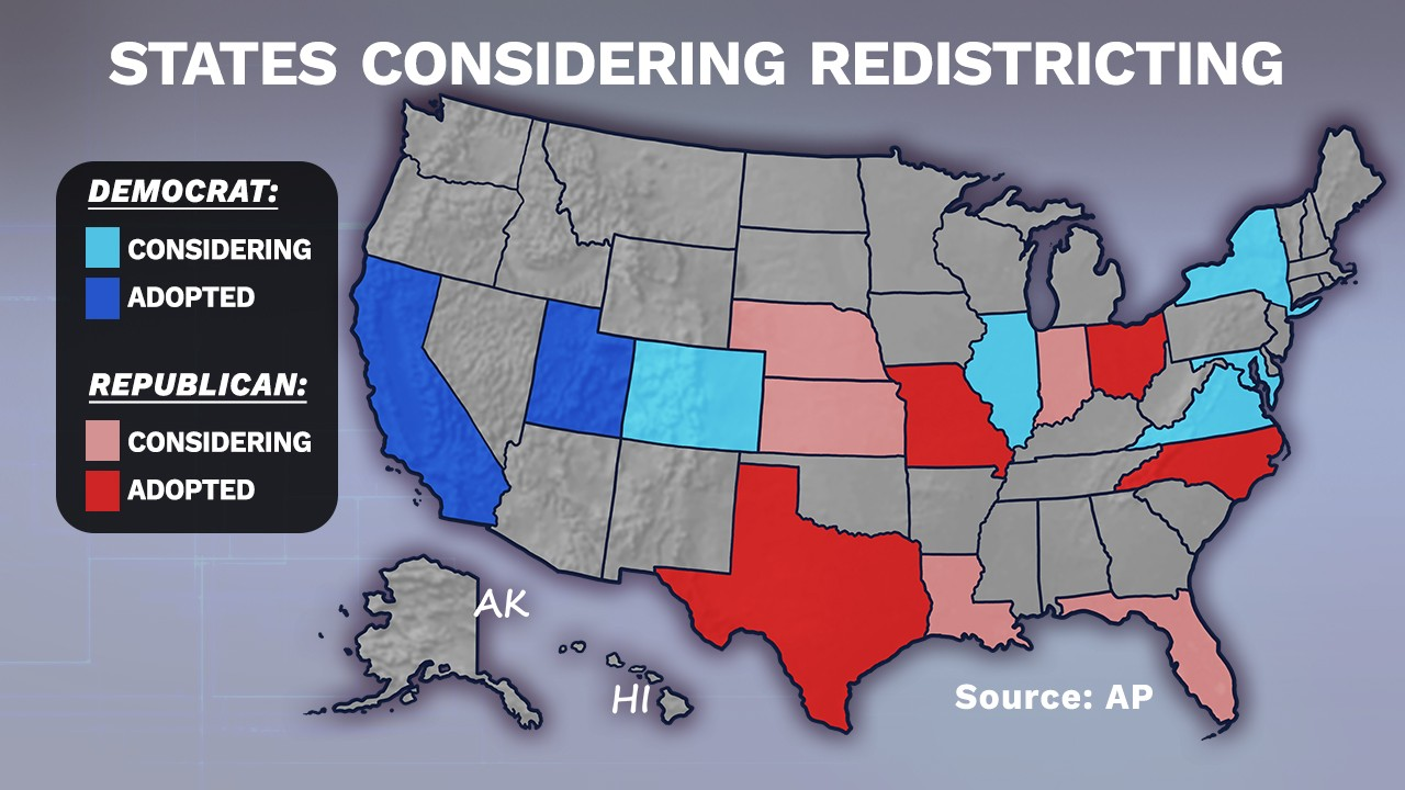 INDIANAPOLIS, IN- Here’s a look at all the states that are currently considering or have adopted new congressional maps.